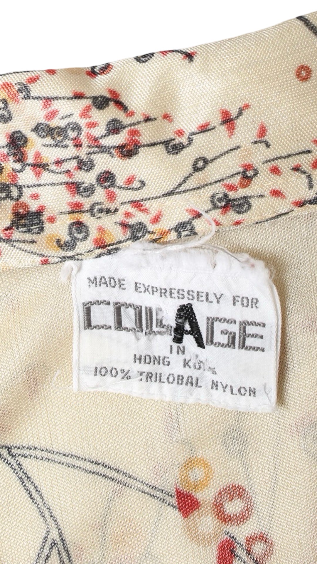 Very good vintage condition. Freshly cleaned and ready to wear! Small bit of color bleed/transfer on front by bird's tail, but is very faint and not really noticeable due to the busyness of the print.