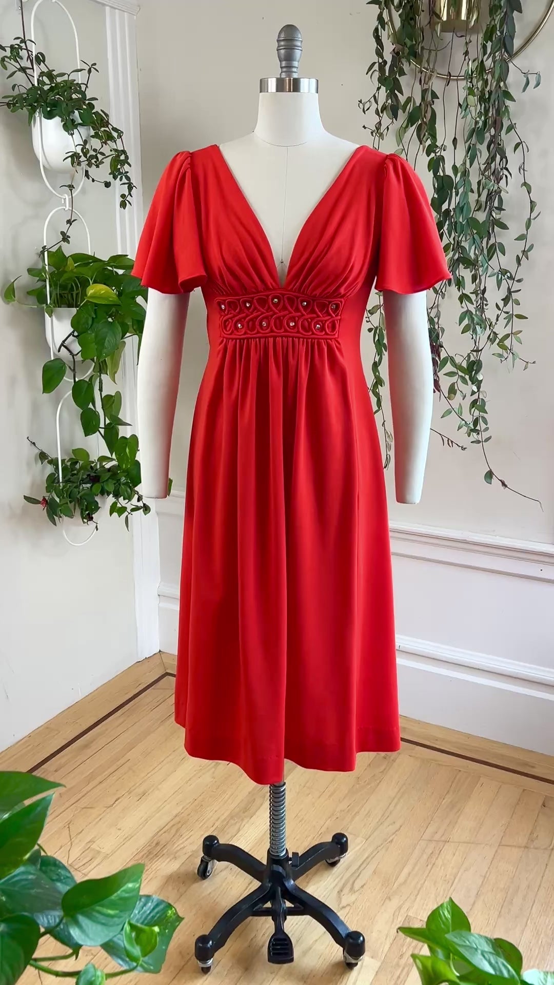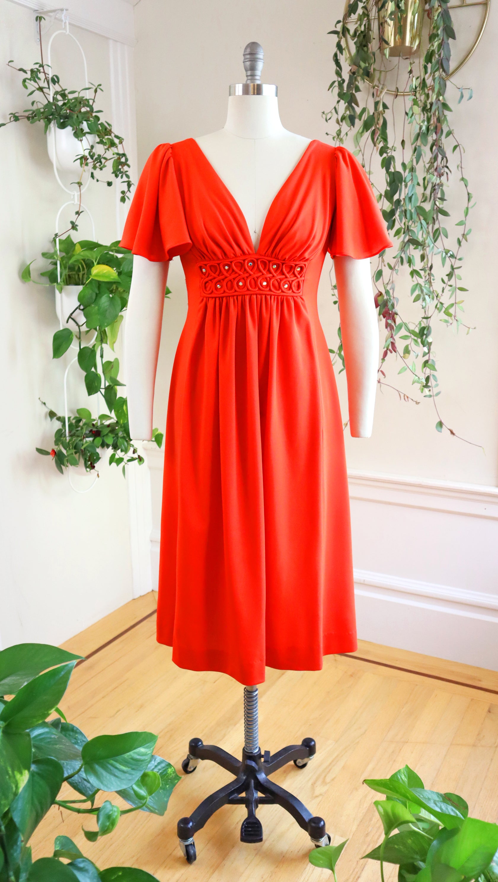 1970s Rhinestone Flutter Sleeve Midi Dress | small