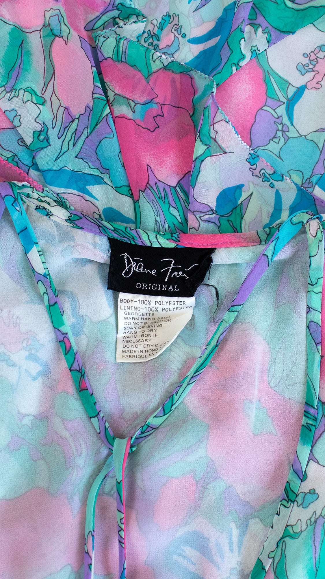 1980s DIANE FREIS Georgette Handkerchief Dress | small/medium/large