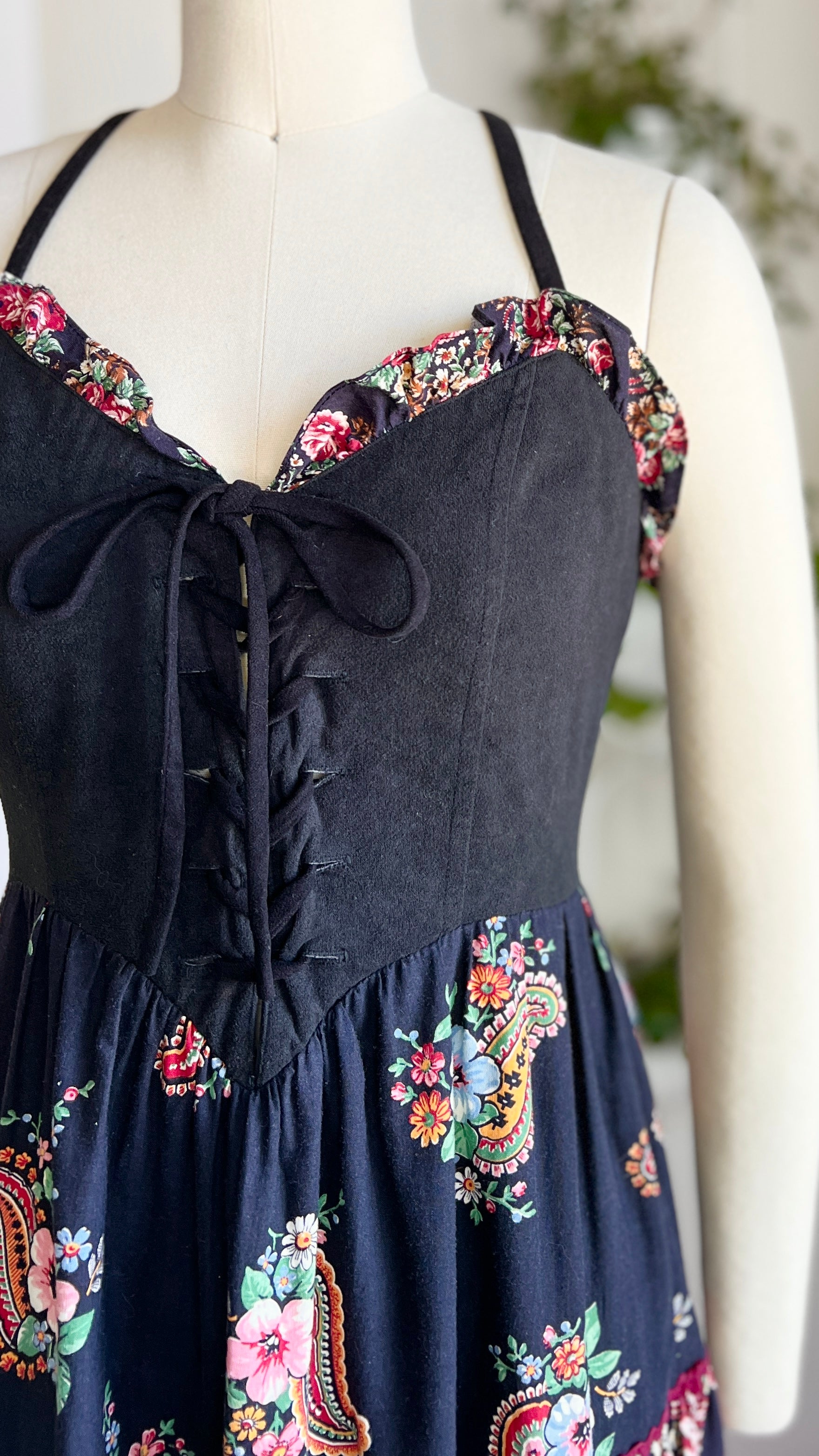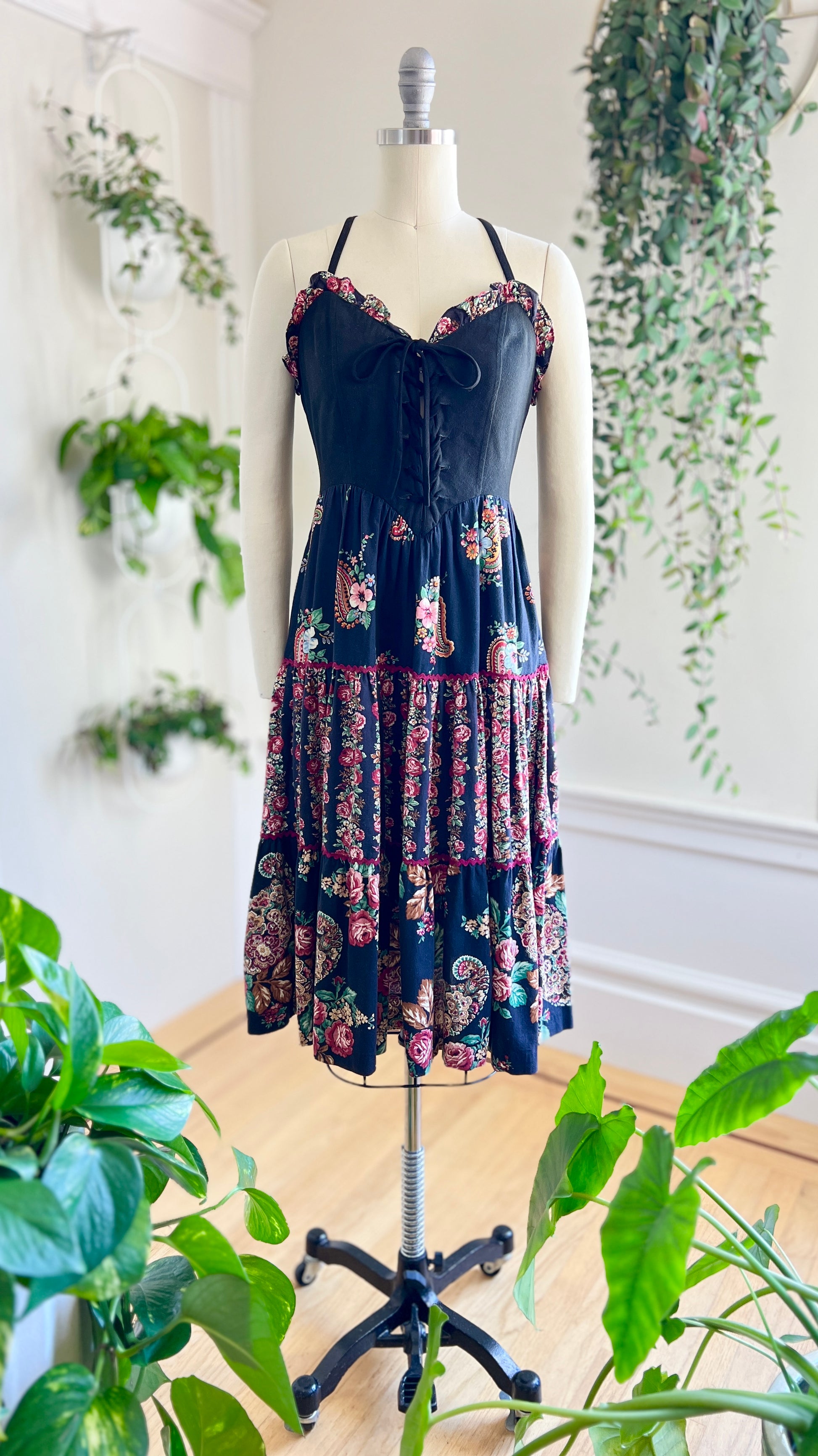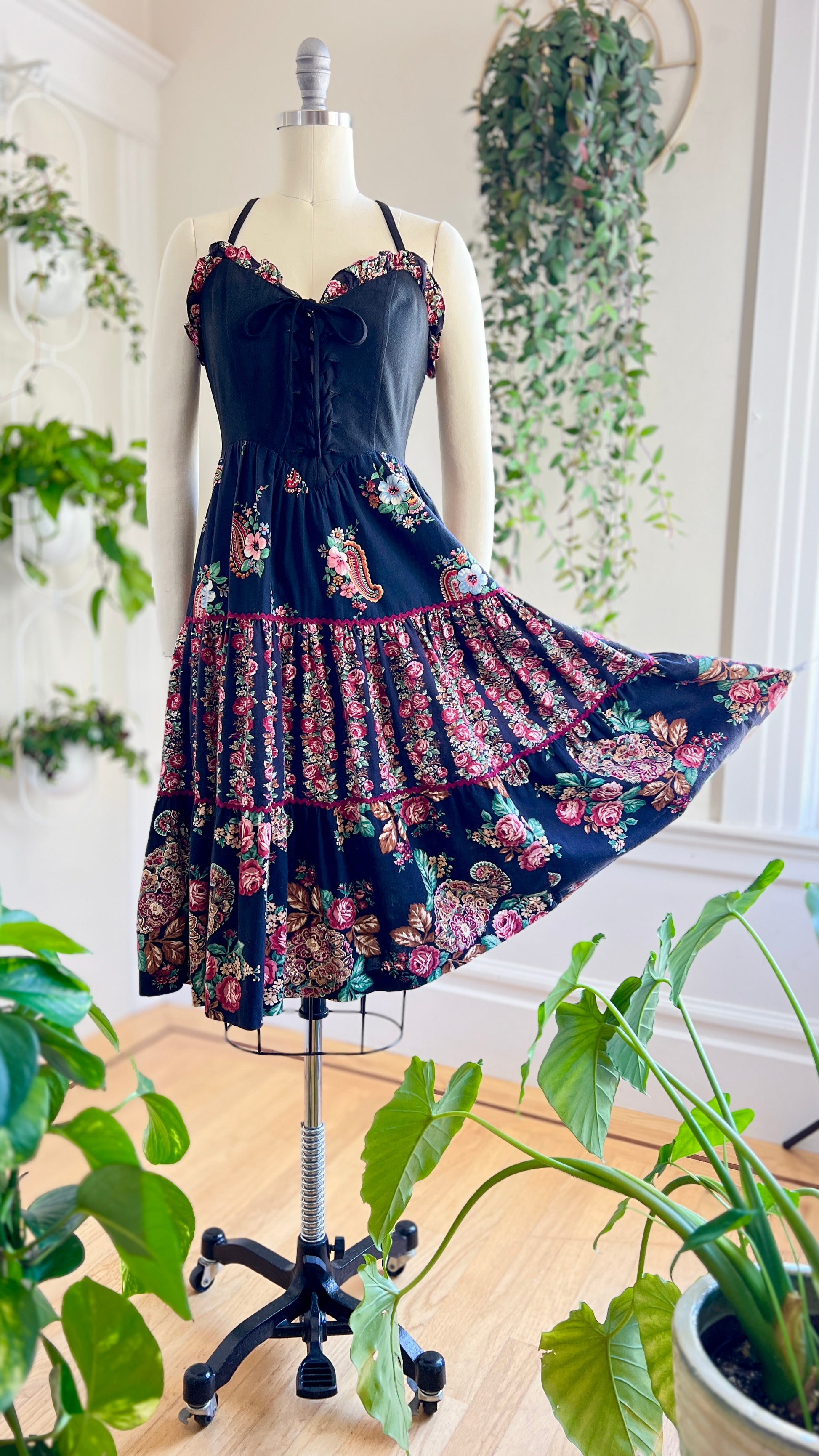 1970s YOUNG EDWARDIAN Floral Corset Dress | small