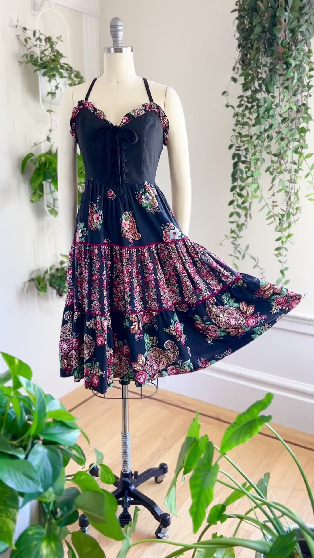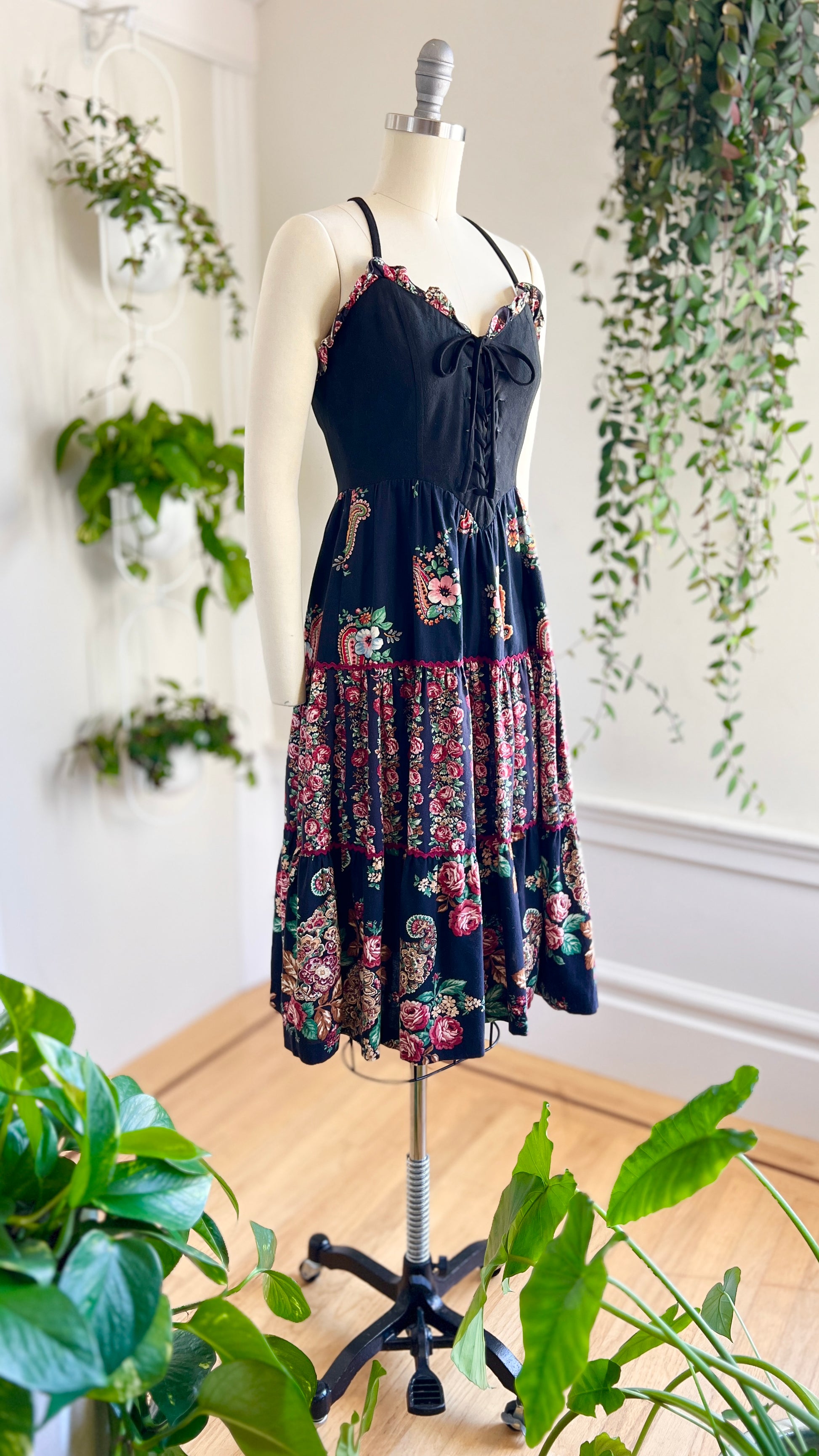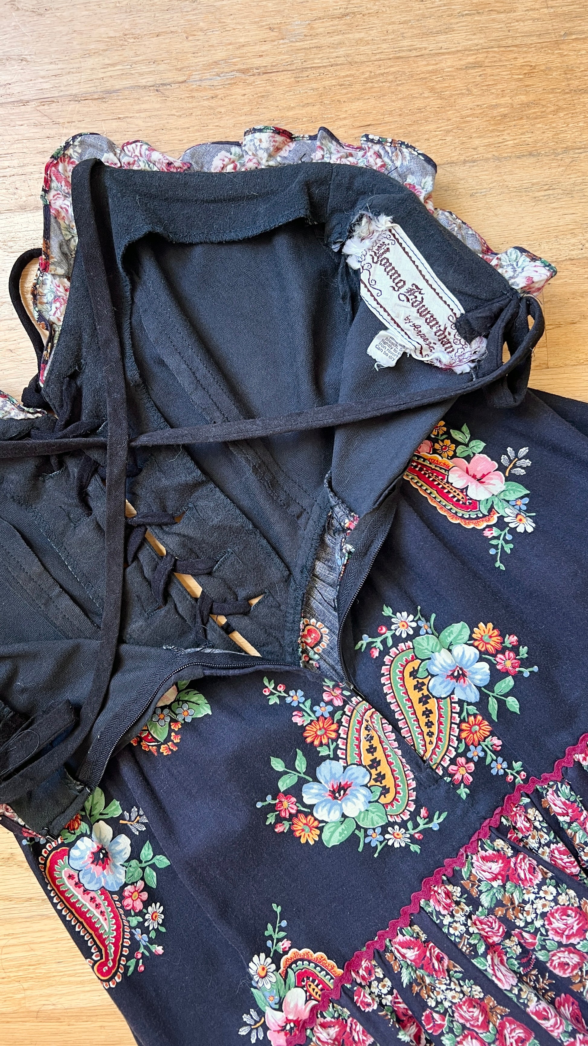 1970s YOUNG EDWARDIAN Floral Corset Dress | small