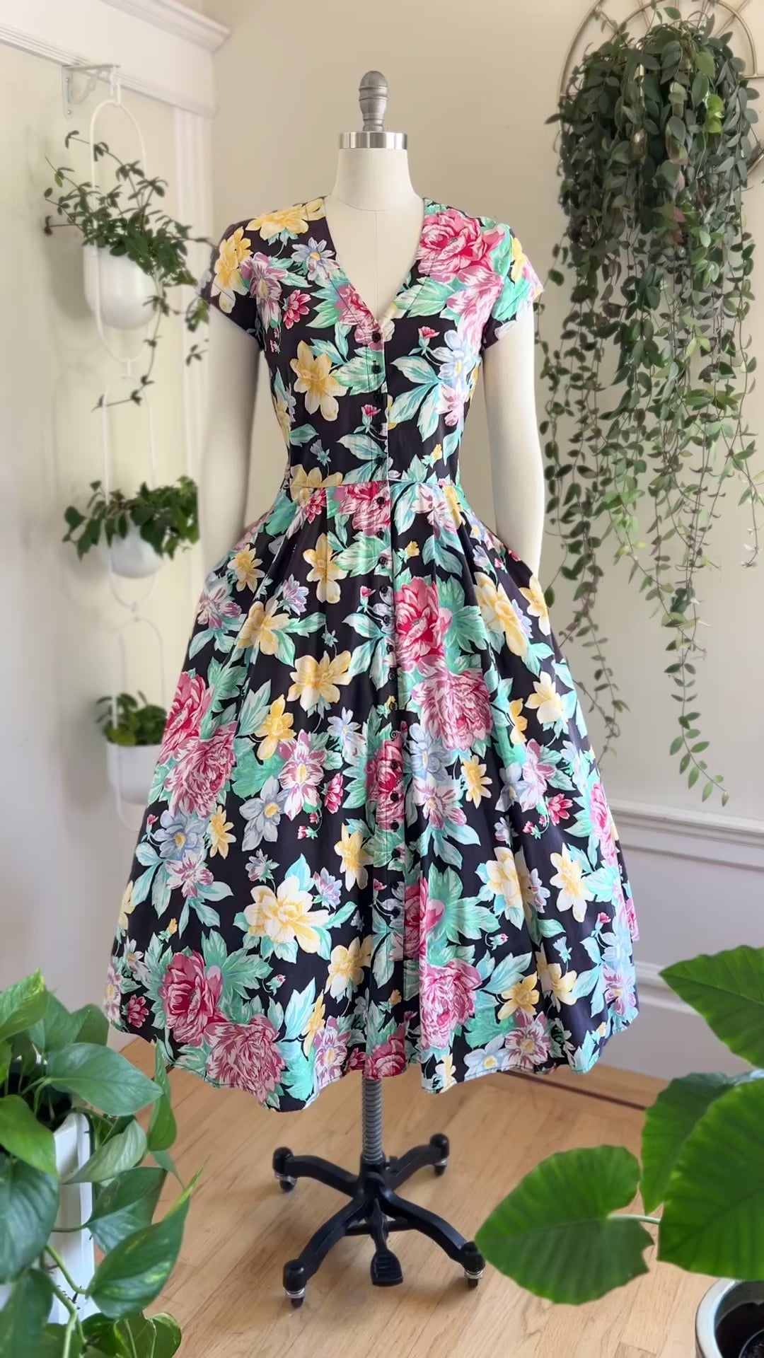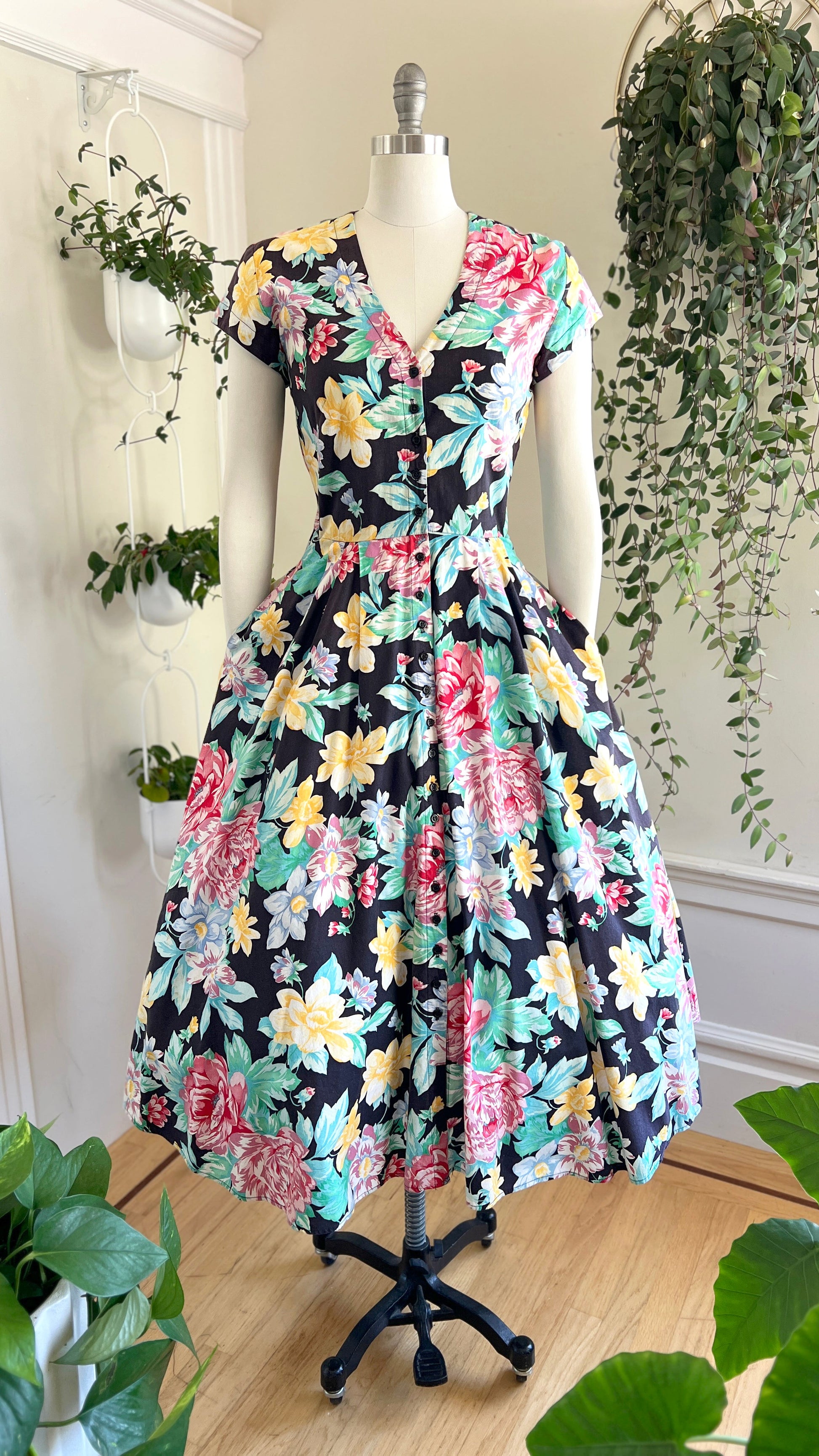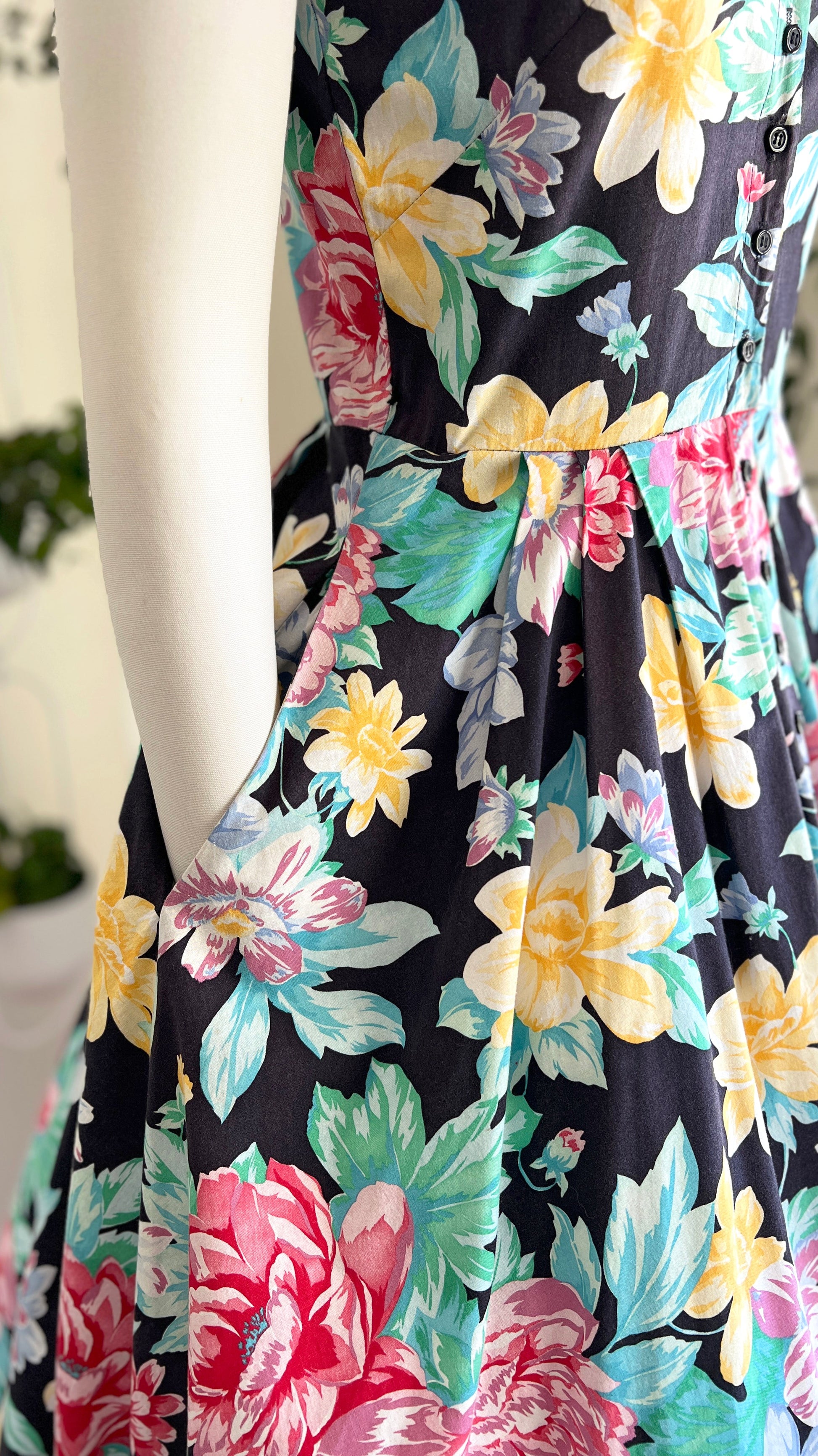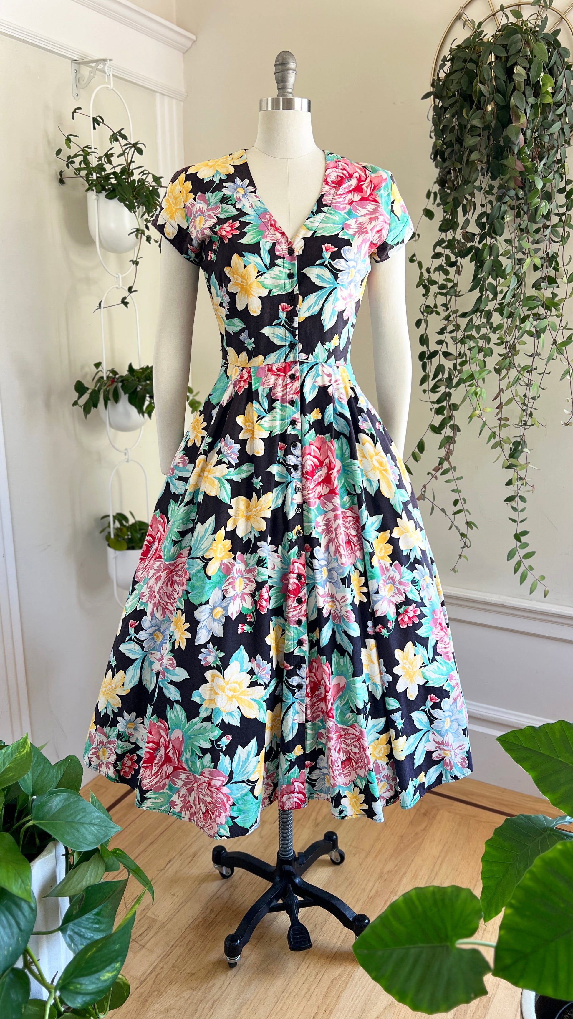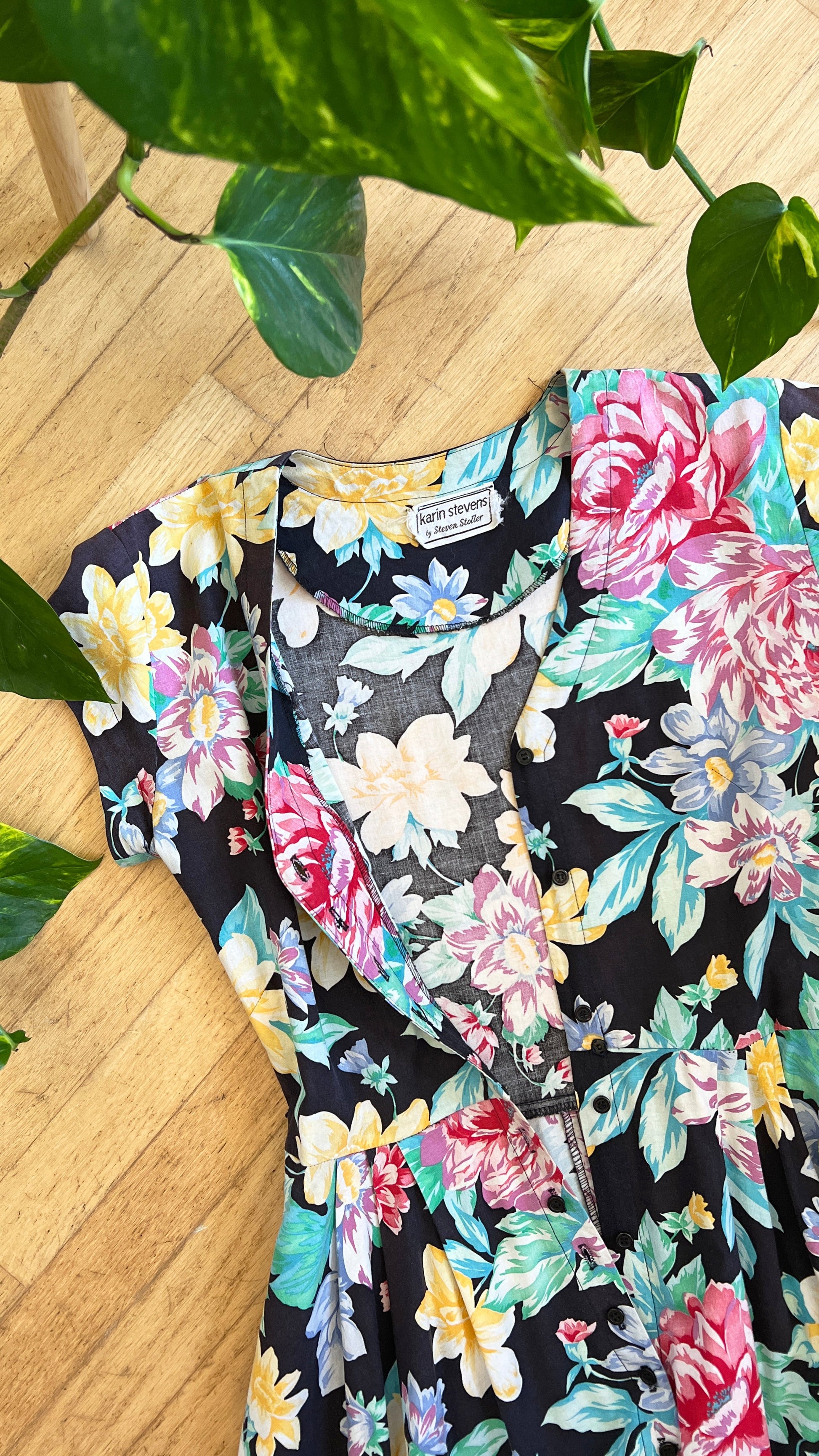 1980s KARIN STEVENS Floral Shirt Dress | medium