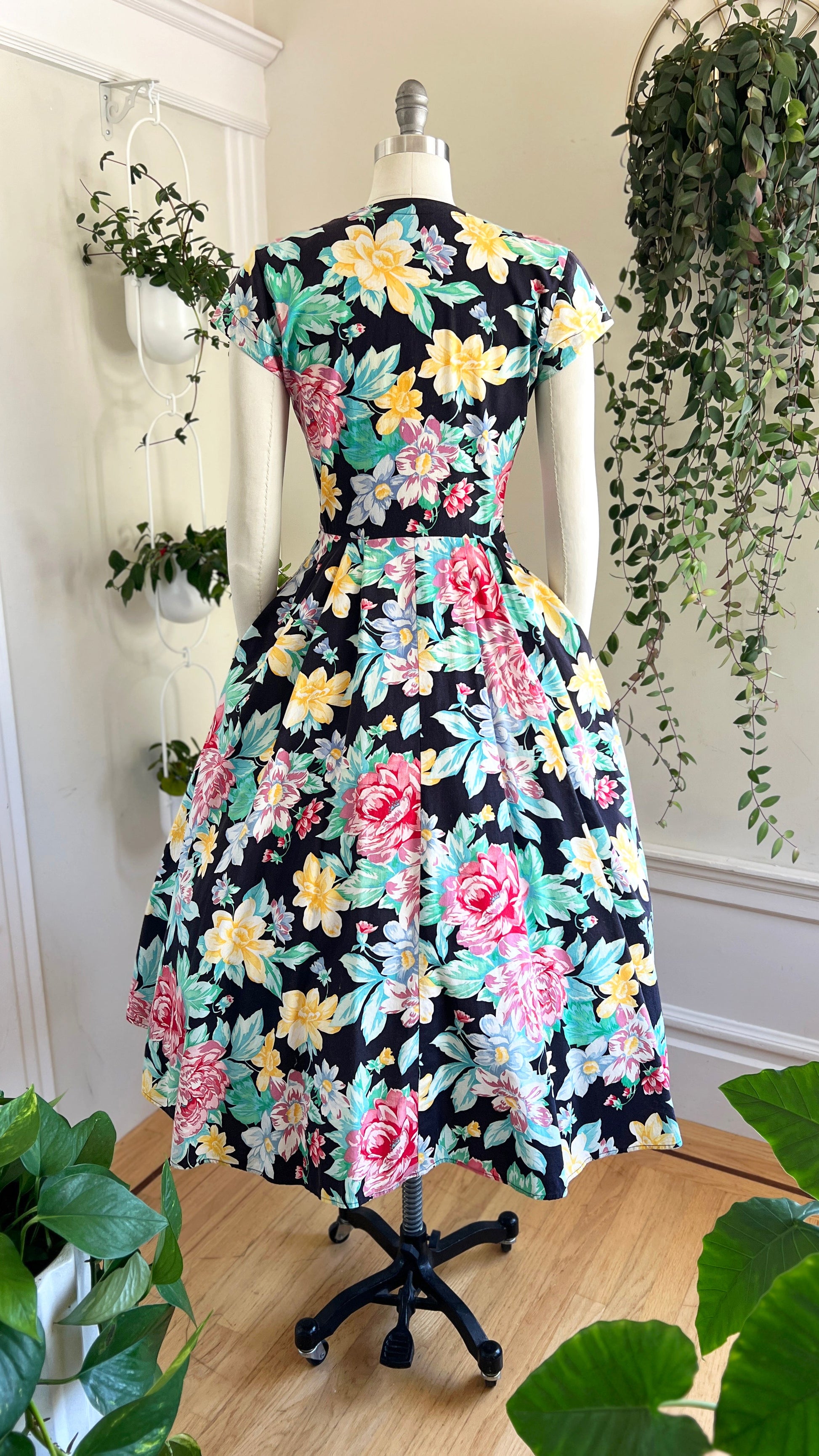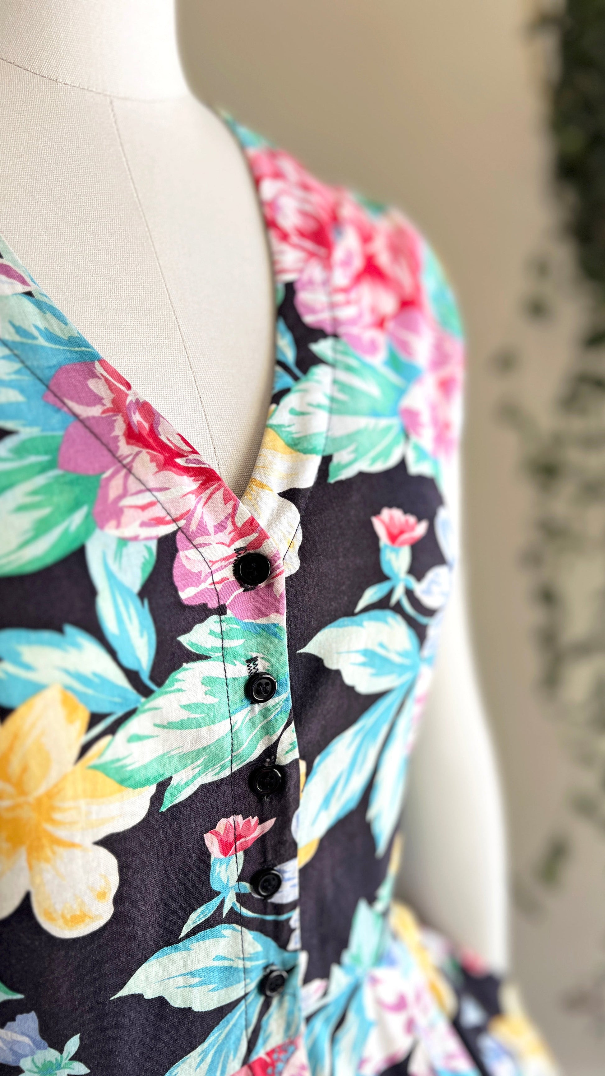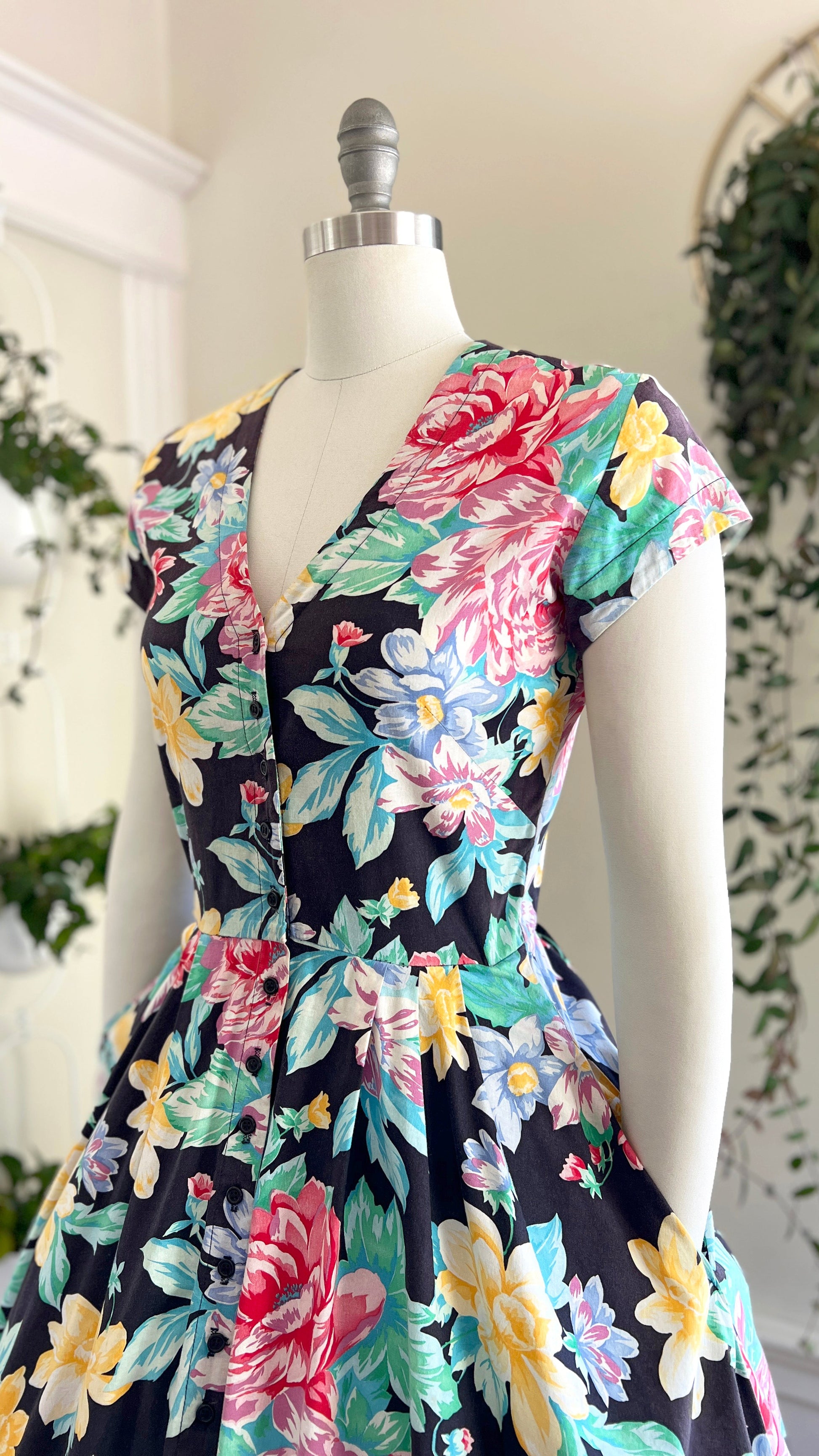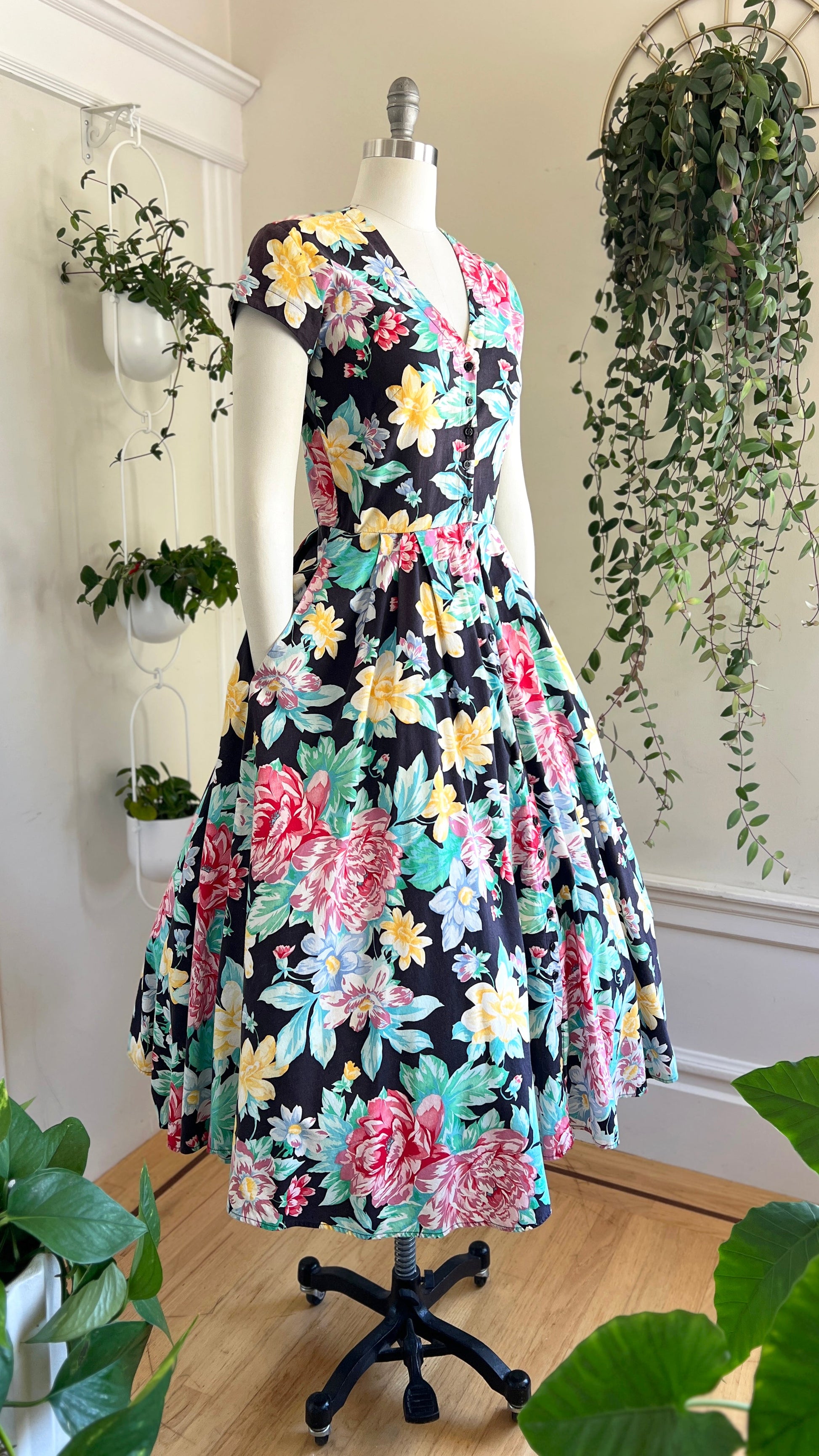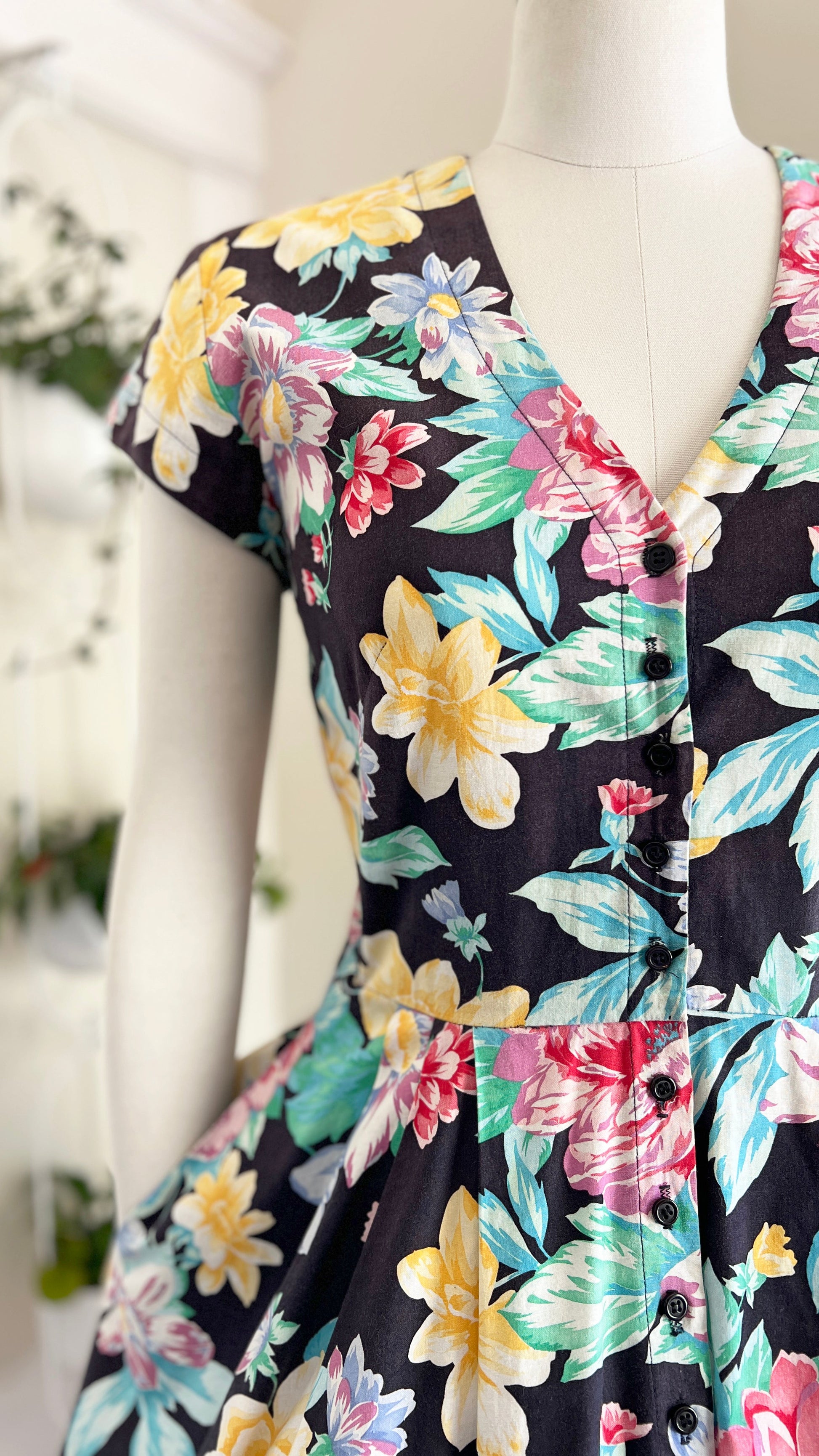 1980s KARIN STEVENS Floral Shirt Dress | medium