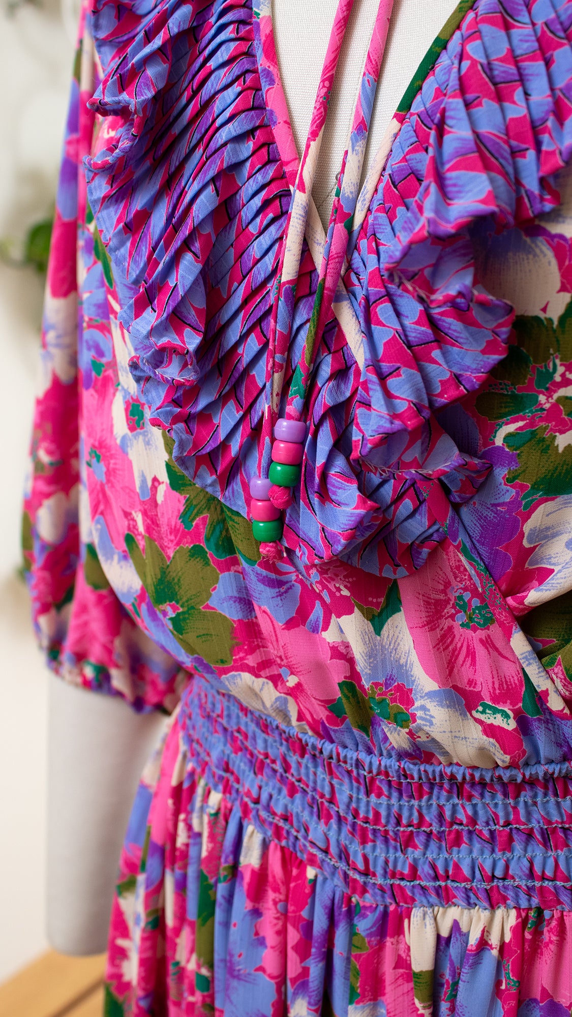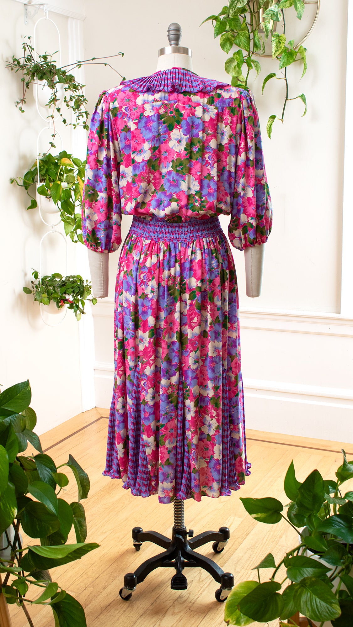 1980s SUSAN FREIS Floral Godet Georgette Dress | small/medium/large