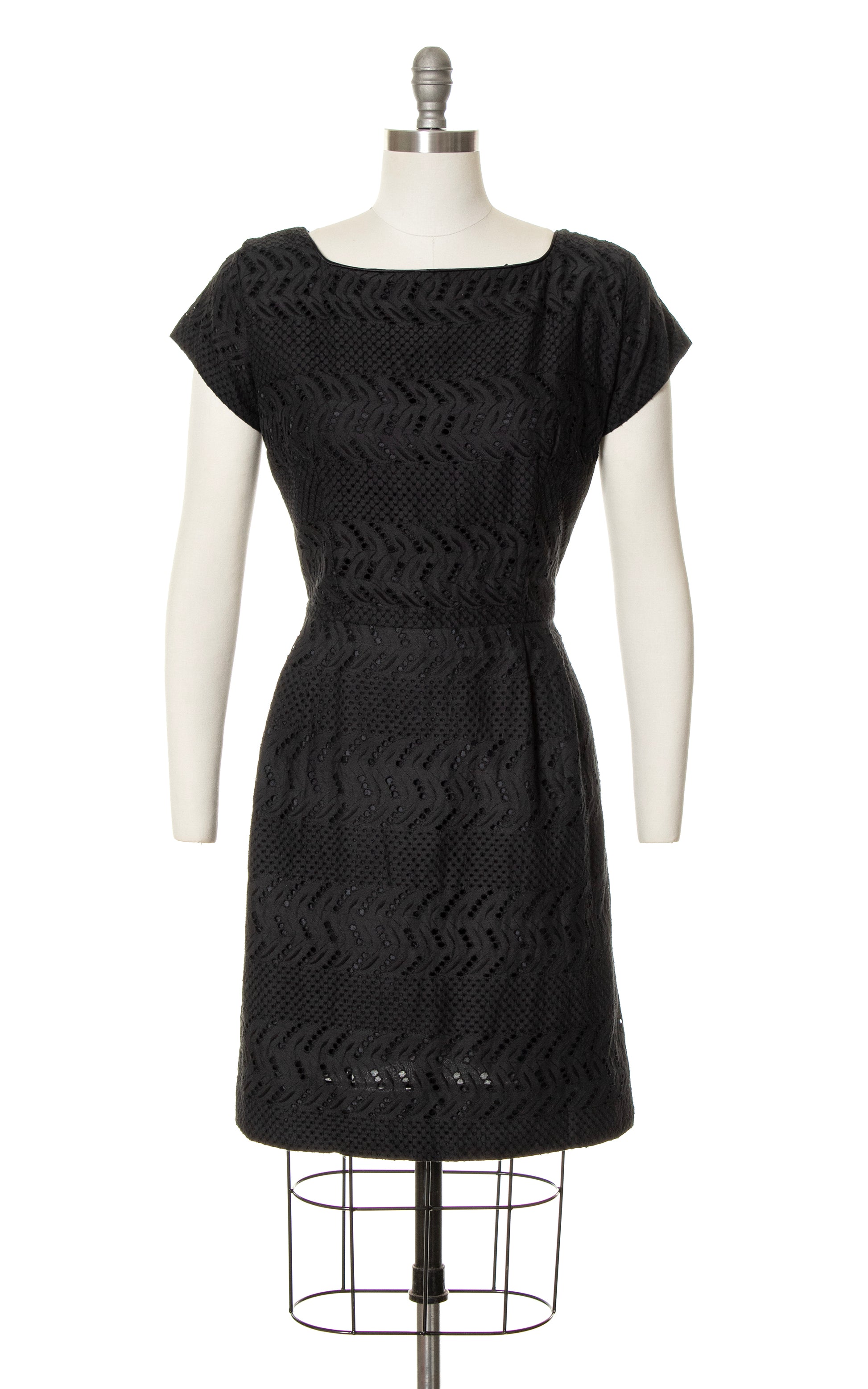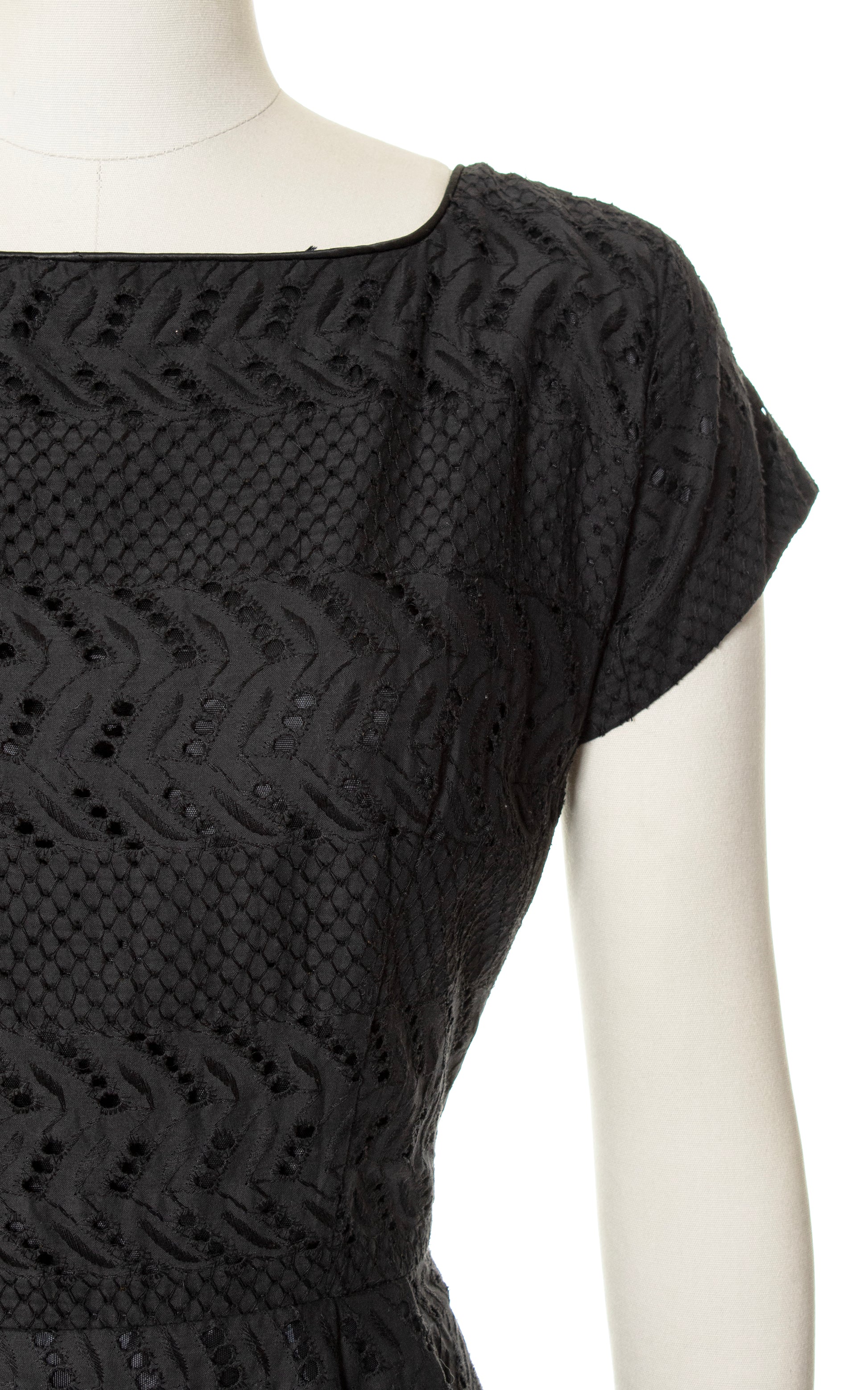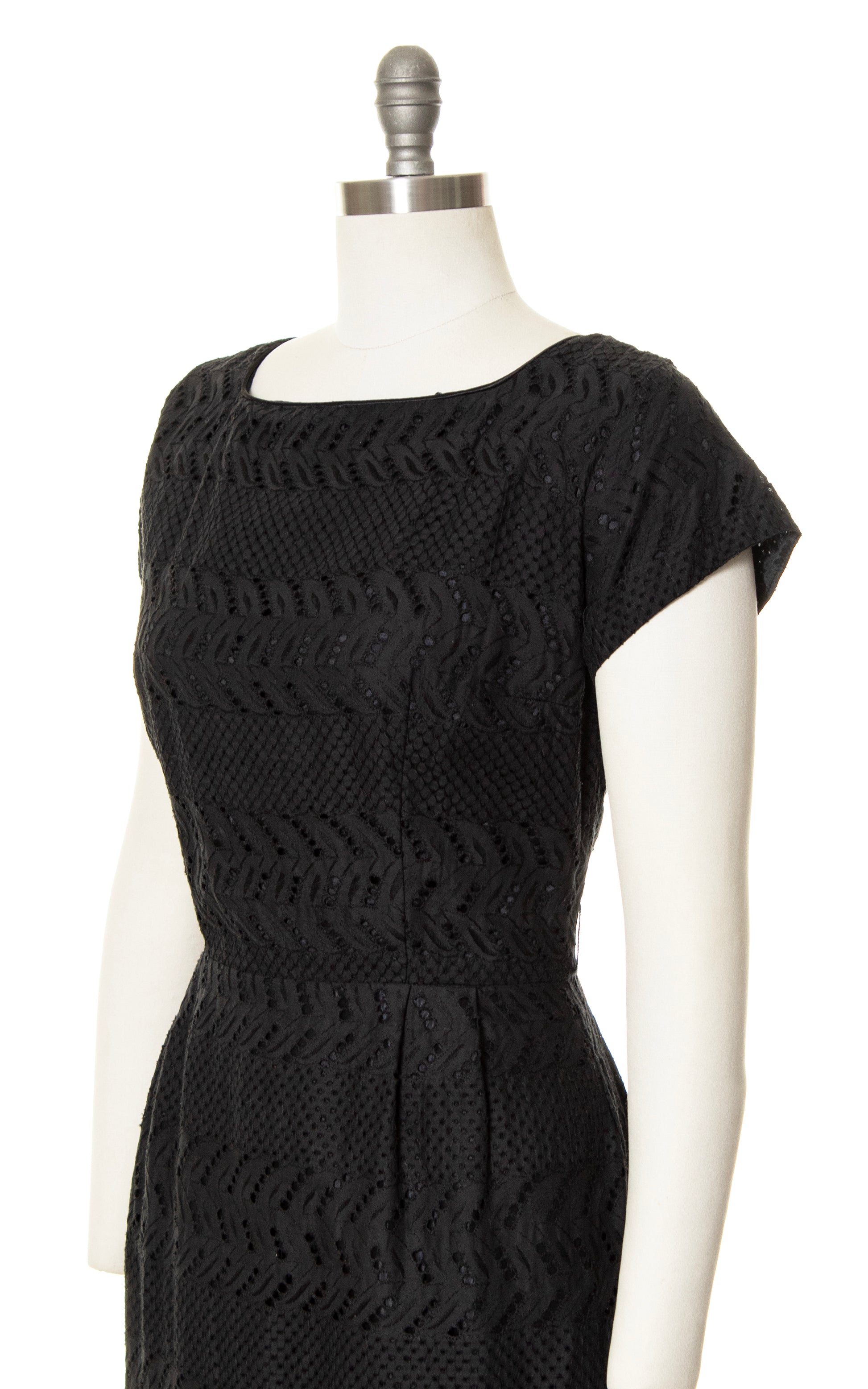 1960s Eyelet Cotton Lace Wiggle Dress | medium