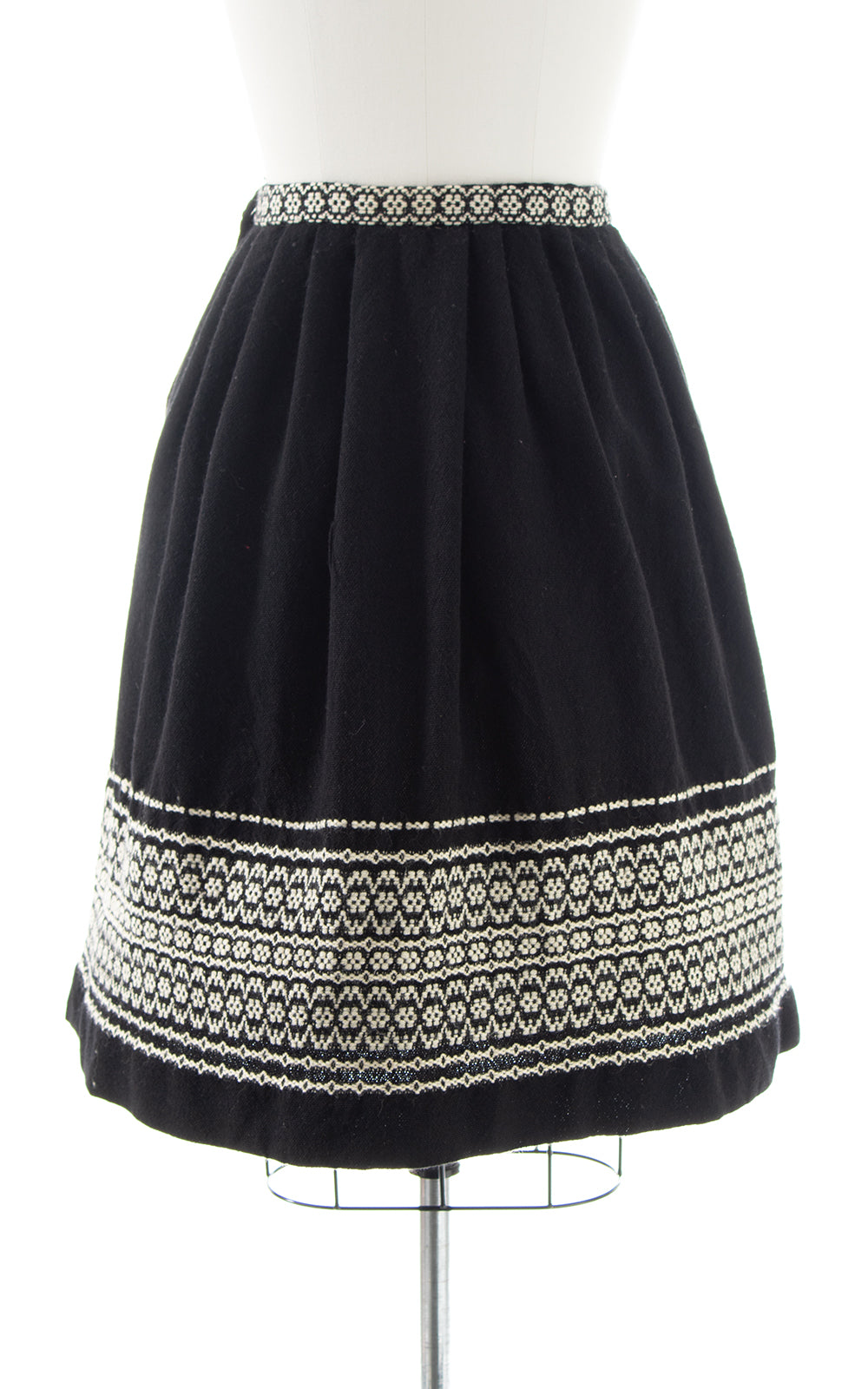 Vintage Geometric Woven Wool Skirt with Pockets | small